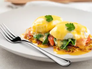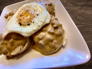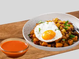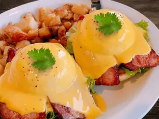 Two cage-free eggs any style with your choice of meat from smoked ham, bacon, chicken apple sausage patties, turkey or pork sausage links. Served with artisan toast and, seasoned potatoes. Substitute gluten-free toast at no additional charge.