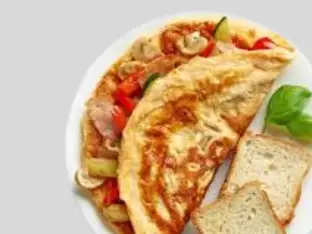 Omelet with ham, bacon, sausage, mushrooms, onions, tomatoes and equally important cheese.